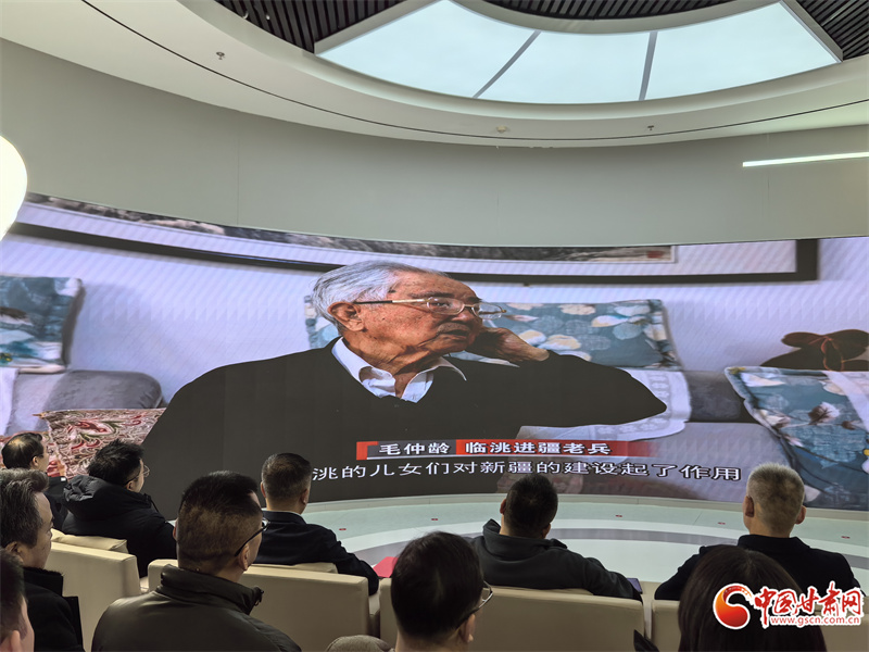 現(xiàn)場,與會領(lǐng)導及嘉賓一同觀看了紀錄片《我的戎疆歲月》宣傳片,臨洮進疆老兵代表毛仲齡老人通過VCR回憶和分享了自己感人的戎疆歲月。