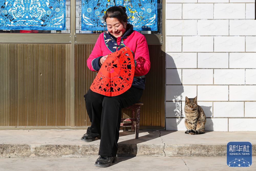 1月5日,在慶陽(yáng)市合水縣西華池鎮(zhèn)唐旗村,張雪峰創(chuàng)作剪紙作品。