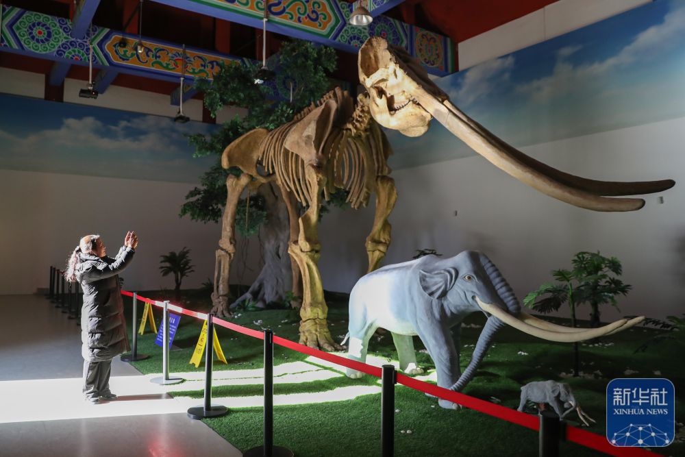 1月5日,在慶陽(yáng)市合水縣隴東石刻藝術(shù)博物館黃河古象展廳,張雪峰拍攝黃河象化石(復(fù)制品)。