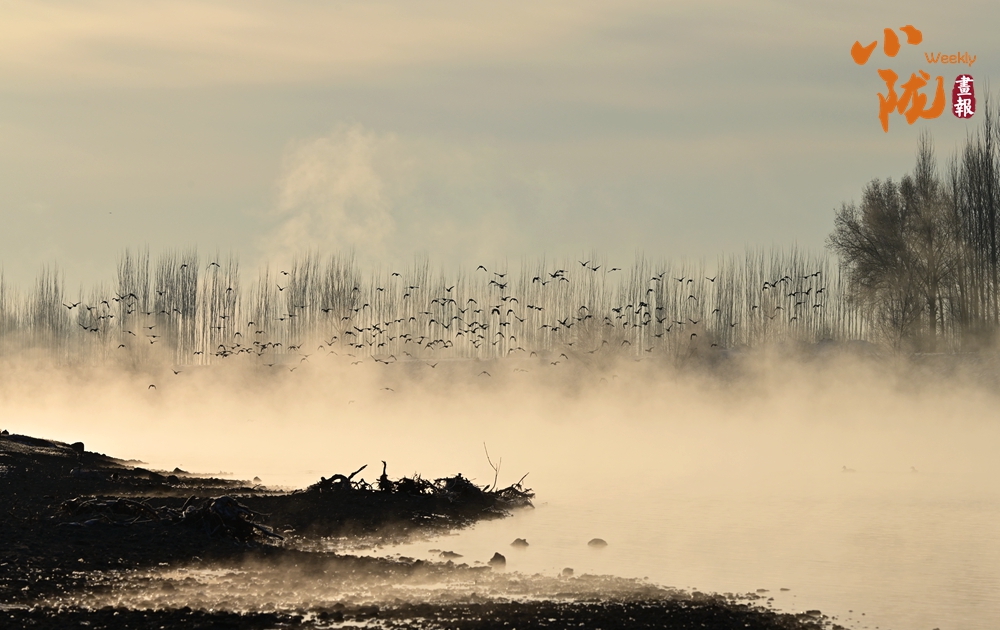 候鳥永遠(yuǎn)是畫里跳動的精靈,它們或游弋,或起舞,是畫中的點(diǎn)點(diǎn)濃墨,聚散之間,畫面靈氣盡現(xiàn)。