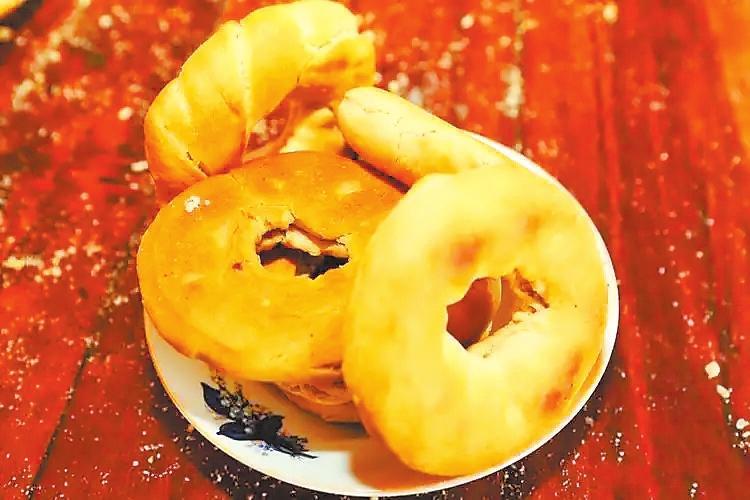 酥油圈圈是甘谷的傳統(tǒng)面點(diǎn),以精細(xì)白面為主料,加入上等胡麻油和各種香料,經(jīng)過精心制作。這種面點(diǎn)咬在嘴里香酥可口,咸淡適中,油而不膩,令人回味無窮。