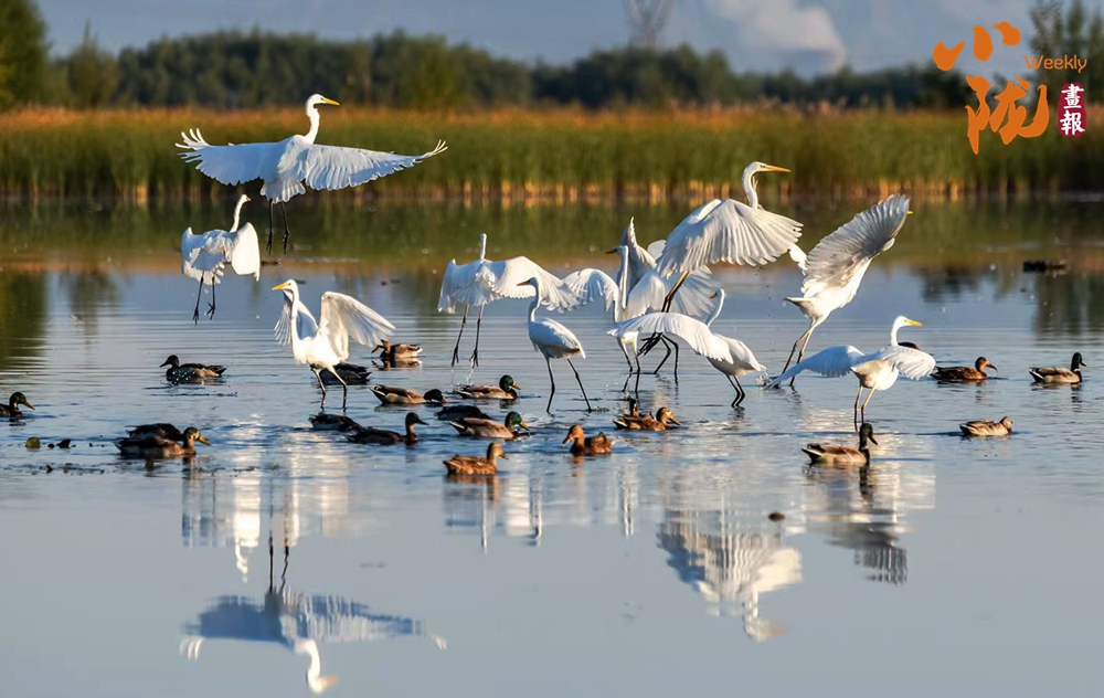 春天,這里萬物復蘇,蘆葦新綠,候鳥歸來,整個公園充滿生機。它們依水而居,或在水中游泳和潛水,或在淺水、灘地與岸邊涉行,或在其上空飛行,引得游人們駐足觀看,構(gòu)成一幅人與自然和諧共生的生態(tài)畫卷。