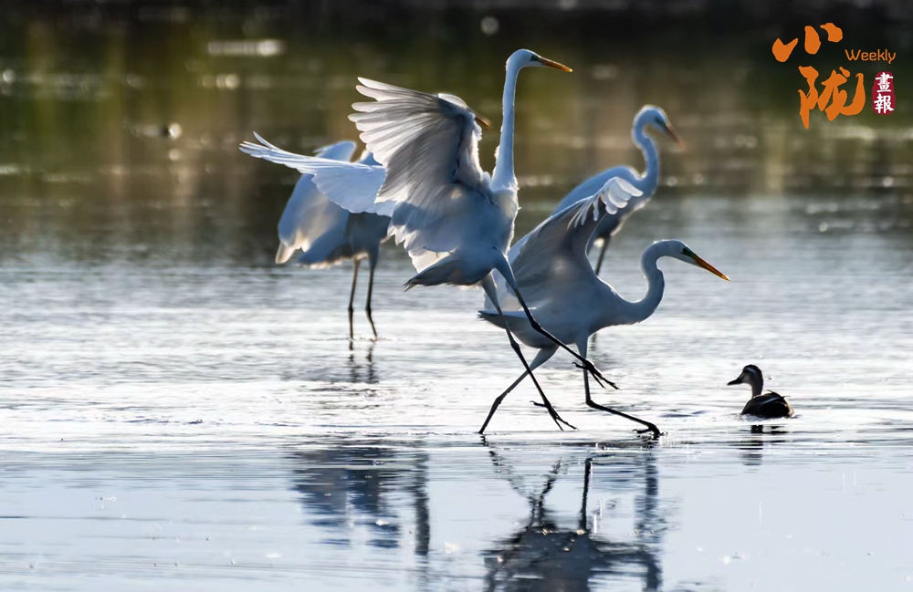湖中的白鷺翩翩起舞,嬉鬧翻飛,歡快鳴叫,有的停落湖岸,有的游向湖心,有的翻飛空中,為游客帶來無盡的歡樂??带B兒們嬉鬧,仿佛回到童年時代。自由、自在、生機無限,讓每個人感受到無窮的生命力量。