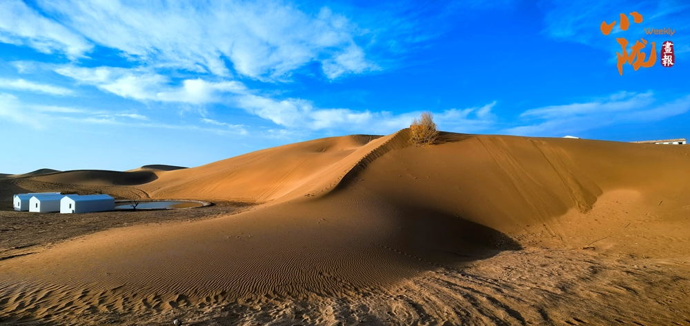 夕陽(yáng)西下,極目遠(yuǎn)眺,在余暉照耀下,連綿起伏的沙丘似金色的海浪,一波接著一波,涌向天際。那細(xì)膩的沙紋,在陽(yáng)光的輕撫下,宛如歲月鐫刻的痕跡,每一道褶皺都藏著故事。