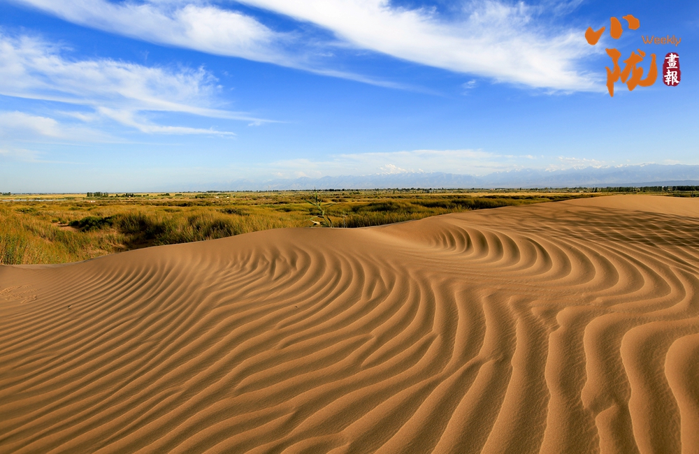 站在綠洲與大漠的結(jié)合處,觀賞四方風(fēng)景,眼前奇異的景致讓人驚嘆萬(wàn)分:一邊是莽莽蒼蒼、雄渾博大、無(wú)邊無(wú)際的大漠海洋,一邊是郁郁蔥蔥、娟秀嫵媚的綠洲碧野。這是大自然杰出的造化,這黃色與綠色之間沒(méi)有任何過(guò)渡,兩色卻形成鮮明的對(duì)比,宛如畫家手下的色盤,黃綠分明、對(duì)比強(qiáng)烈而又和諧統(tǒng)一,令人叫絕。