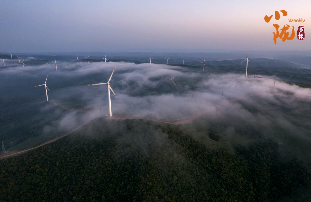 風(fēng)車在云海中旋轉(zhuǎn),仿佛觸手可及,又似遙不可及。云海翻騰,風(fēng)車旋轉(zhuǎn),似乎與天空進(jìn)行著一場(chǎng)無(wú)聲的交響樂(lè)。關(guān)山風(fēng)光大道,作為張家川縣境內(nèi)風(fēng)電新能源通道的拓建開(kāi)發(fā)項(xiàng)目,已形成了一條綿延百里的關(guān)山觀光走廊。在這靜謐的山間,唯有風(fēng)車的轟鳴聲打破了沉寂,它與飄渺的云霧、巍峨的山嶺共同構(gòu)成了一幅絕美的畫卷。