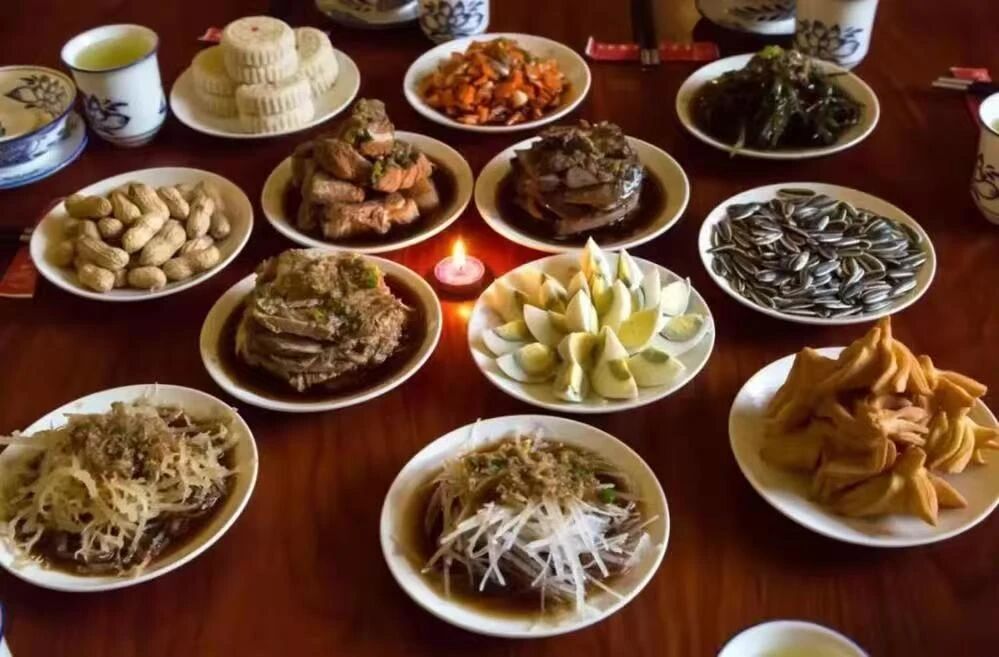 ——“十三花”,寓意胡太后以民為本的執(zhí)政理念;城內(nèi)四個(gè)葷菜,寓意人民四季安康、幸福美滿;骨頭碟和懸肉碟,寓意父骨母血、尊老孝親;肝子碟和雞蛋碟,寓意肝膽相照、心心相??;四個(gè)水菜碟子水圍城,寓意順風(fēng)順?biāo)?、四方平安;城外瓜籽花生碟,寓意多子多福、多祿多壽;路食和果子,寓意衣豐食足、一路平安;最中間一個(gè)大碟全盤為中心,寓意團(tuán)結(jié)聚力、天下一心。