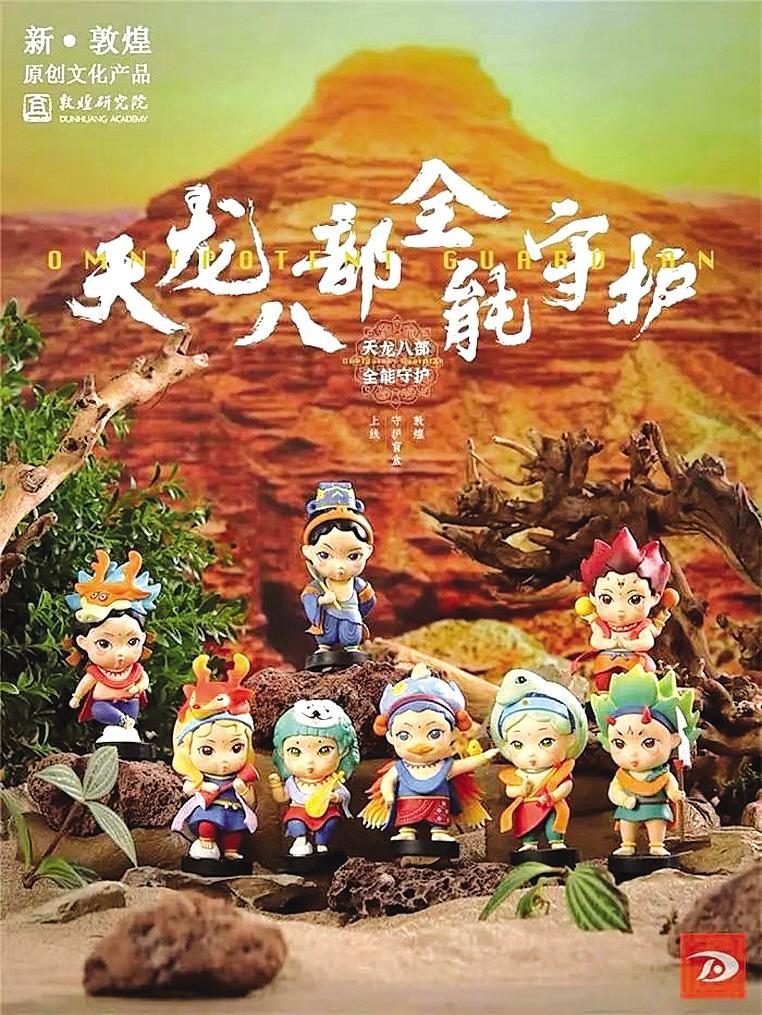 盲盒的設(shè)計(jì)取自敦煌莫高窟壁畫,特指佛經(jīng)中的八種神道怪物,和金庸的小說《天龍八部》也有人物對照。盲盒包括迦樓羅、乾闥婆、夜叉、摩睺羅伽、帝釋天、緊那羅、阿修羅、那伽八大護(hù)法神形象。這也是繼故宮、河南博物院、三星堆博物館之后,敦煌研究院又推出盲盒。