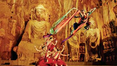 為此,主創(chuàng)人員對龍門石窟中生動多樣的藝術(shù)造型進(jìn)行了全面梳理。“我們請教專家,翻閱、學(xué)習(xí)大量典籍,深入理解龍門石窟‘伎樂天’形象;同時把握龍門‘金剛’不同于云岡石窟、敦煌壁畫的特點(diǎn),它更為‘中國化’,更加樸實(shí)、有力量。”李鵬說,團(tuán)隊(duì)在此基礎(chǔ)上,進(jìn)一步進(jìn)行藝術(shù)化處理,編排成舞蹈,做到“每一個造型定格時,體態(tài)在龍門石窟中都有據(jù)可依,可以找到原型”。