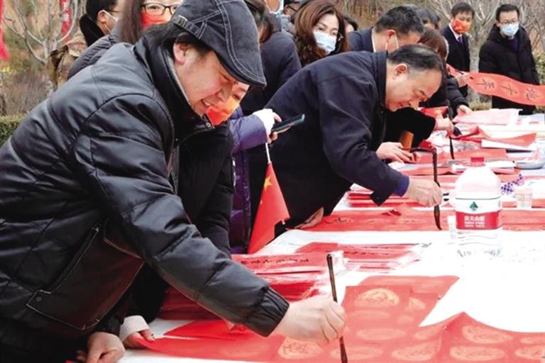 在此次活動(dòng)中,省文旅廳組織向靜寧縣捐贈(zèng)了藝術(shù)普及高質(zhì)量發(fā)展、智慧圖書館、三館一站免費(fèi)開放、戲曲進(jìn)鄉(xiāng)村、“春綠隴原”文藝展演、文化人才服務(wù)支持等項(xiàng)目經(jīng)費(fèi)共計(jì)324萬元?;顒?dòng)現(xiàn)場(chǎng),還向群眾贈(zèng)送了數(shù)字文化資源光盤及1000余份省內(nèi)旅游宣傳資料;組織市級(jí)非遺傳承人開展手工技藝展示,向群眾贈(zèng)送窗花及“福”字等剪紙作品;組織書畫專業(yè)人員為群眾寫春聯(lián)、送書畫,受到群眾的熱烈歡迎,為即將到來的虎年春節(jié)增添了濃濃的喜慶氛圍。
