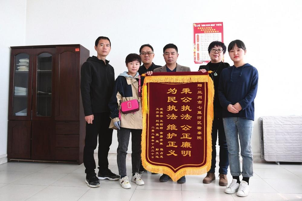 中國(guó)甘肅網(wǎng)10月27日訊 據(jù)蘭州晚報(bào)報(bào)道(記者 許沛潔 文/圖) “今天,我們專程過(guò)來(lái)感謝各位檢察官。你們維護(hù)了公平正義,如果沒(méi)有檢察院的依法監(jiān)督,我們這8個(gè)家庭就要背負(fù)287萬(wàn)元的債務(wù)!”這份感謝來(lái)自七里河區(qū)檢察院辦理的一起民事審判監(jiān)督系列案件的多名申請(qǐng)人。10月26日,他們將一面錦旗交到了七里河區(qū)檢察院梁德安副檢察長(zhǎng)和第四檢察部負(fù)責(zé)人手中,表達(dá)對(duì)辦案檢察官的感謝之情。