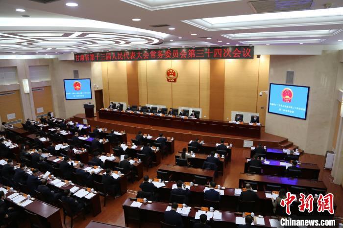 11月22至25日,甘肅省第十三屆人大常委會(huì)第三十四次會(huì)議在蘭州召開(kāi)。圖為會(huì)議開(kāi)幕式現(xiàn)場(chǎng)?!■亩盼蹶俊z