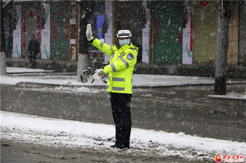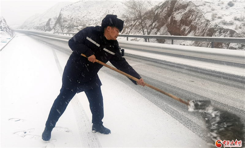 甘肅各地交警戰(zhàn)風(fēng)雪保平安