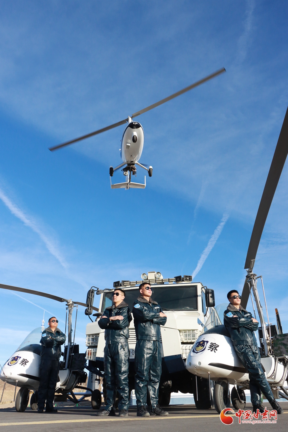 甘肅出入境邊防檢查總站酒泉邊境管理支隊利用旋翼機在馬鬃山邊境管理區(qū)戈壁荒漠地區(qū)開展空中巡防任務(wù)。該隊的成立成為甘肅出入境邊防檢查總站“科技興警、科技管邊”的一張亮麗名片,標志著“智慧邊境、數(shù)字邊境”平安邊境體系的初步形成。“飛天警隊”是全國移民管理系統(tǒng)首支旋翼機隊成立于2020年7月,由9名民警組成,平均年齡不超過30歲。
