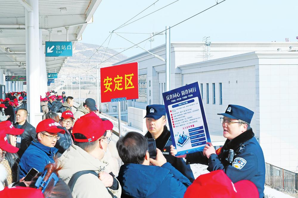 記者了解到,這批務(wù)工人員來自定西市各縣區(qū),既有返崗務(wù)工人員,也有新聘務(wù)工人員。為保障此次高鐵務(wù)工專列順利開行,蘭州鐵路公安處定西北站派出所積極與定西北車站、客運部門通聯(lián),專門開辟“綠色通道”,暢通進(jìn)站、安檢、檢票等進(jìn)站環(huán)節(jié),劃定專門候車進(jìn)站區(qū)域,同時增派警力逐一引導(dǎo)務(wù)工人員有序進(jìn)站,幫助提拿大件行李、講解防范電信詐騙小妙招,用心用情保障務(wù)工旅客乘車安全。
