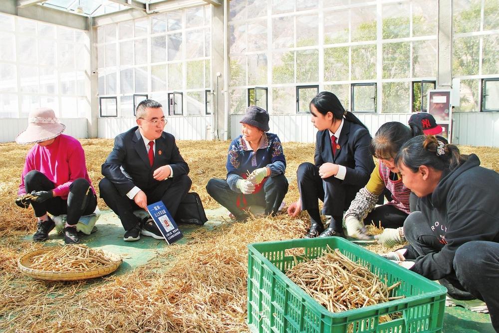 文縣法院安昌河法庭聚焦當(dāng)?shù)攸h參特色產(chǎn)業(yè),組織干警走進企業(yè)開展司法服務(wù)(2024年10月22日拍攝)。 文縣法院供圖