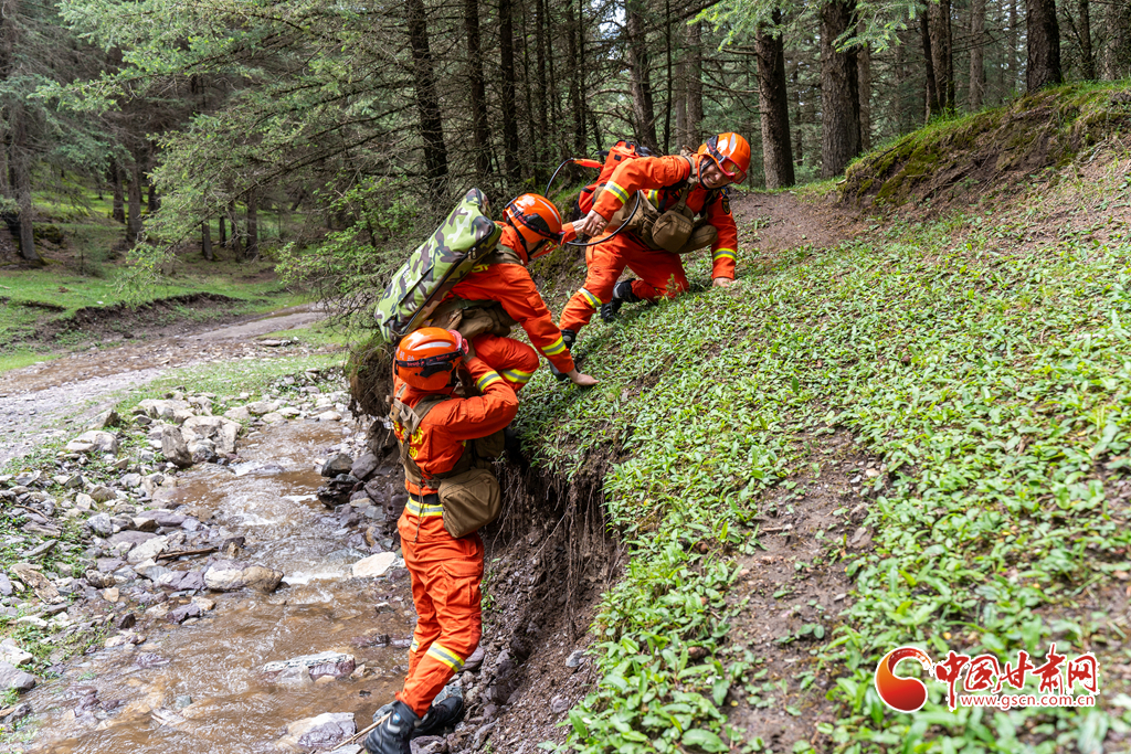 消防救援人員穿越密林