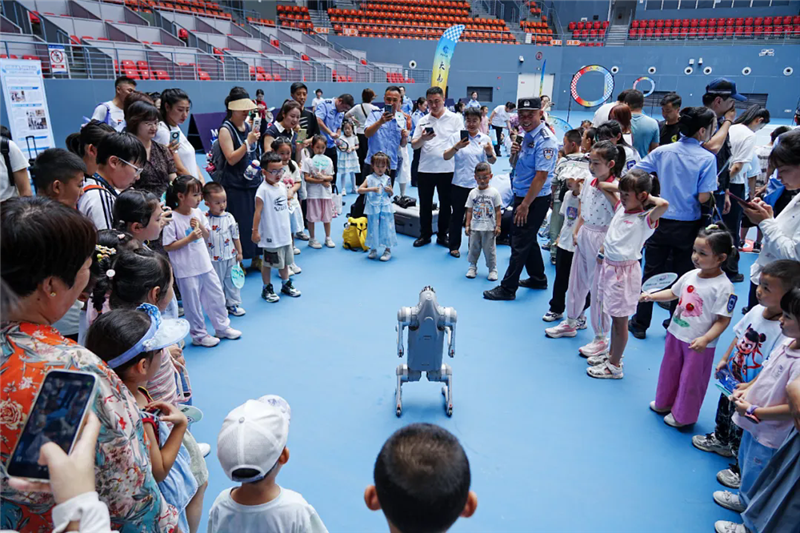 緊接著,在網(wǎng)球館前,大家首先被特警隊員精彩的防暴小隊戰(zhàn)術演練所震撼,矯健的身手贏得了陣陣掌聲。警犬迅猛精準的撲咬展示更是讓小朋友們連連叫好。警用機器狗的靈活表演引得大家紛紛上前互動,最讓小朋友們躍躍欲試的還是無人機穿梭器的體驗環(huán)節(jié),戴上眼鏡感受著穿梭器的“速度與激情”,孩子們臉上洋溢著喜悅和興奮,近距離感受到了科技在公安工作中的強大應用。