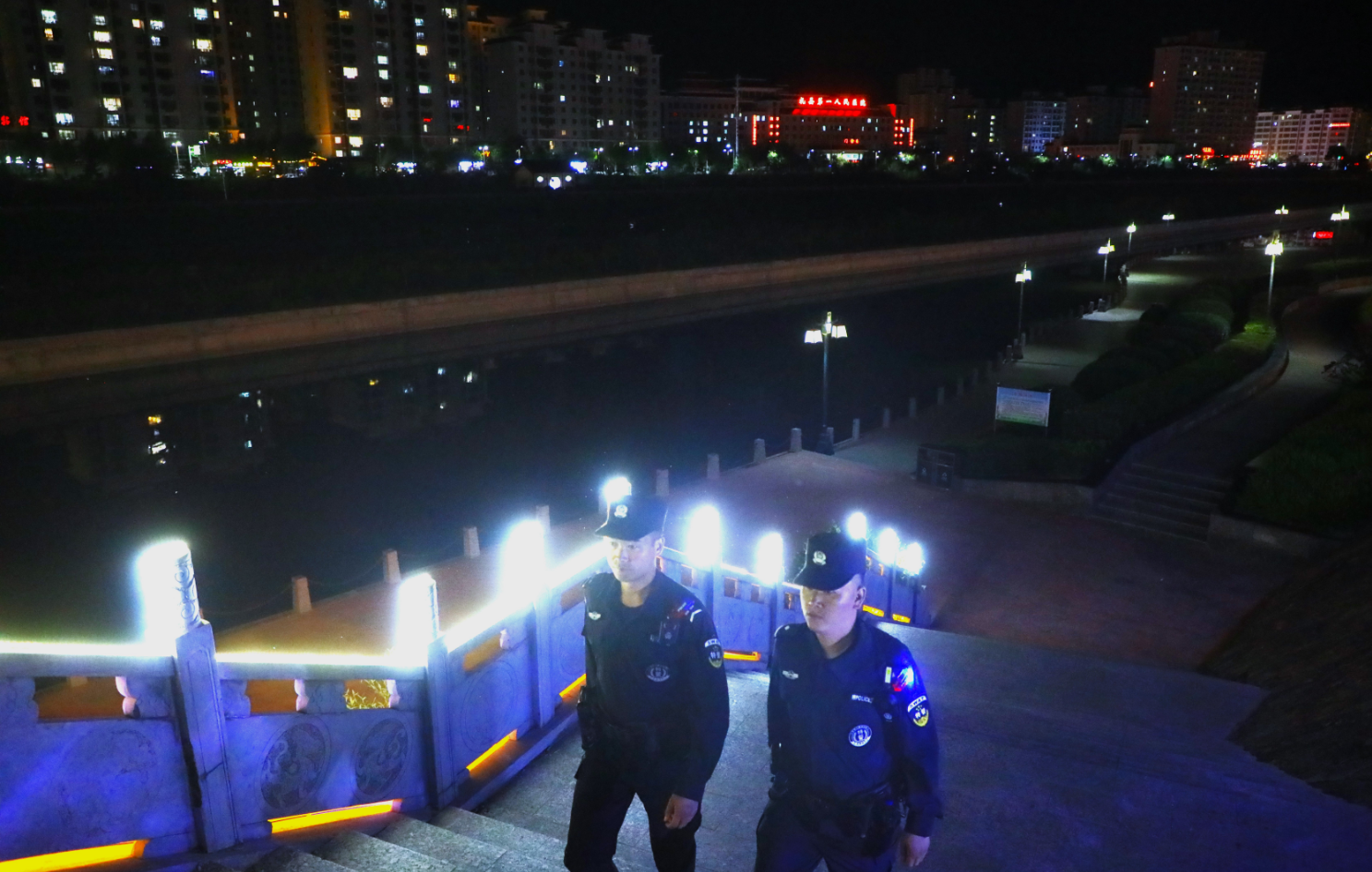晚上九點(diǎn)的新城公園,水波在微光下輕輕蕩漾,本該靜謐的湖畔卻傳來(lái)孩童未歇的嬉鬧。幾個(gè)小小的身影,趴在湖邊手持小小的漁網(wǎng)在撈小魚(yú),離幽暗的深水區(qū)不過(guò)幾步之遙。教導(dǎo)員趙啟和隊(duì)友悄然靠近,沒(méi)有刺耳的警笛,只有肩燈和手電筒在夜色中投下柔和的光暈。趙啟緩緩蹲下,視線與孩子們齊平。“嘿,小家伙······”他的聲音溫和卻帶著不容置疑的鄭重,“晚上不能在湖邊玩耍,更不能冒險(xiǎn)撈魚(yú)。白天讓大人帶你們過(guò)來(lái)玩,好不好?”肩燈的光映在孩子們好奇又略帶怯意的臉上。一個(gè)捏著螢火蟲(chóng)的小男孩仰頭問(wèn):“警察叔叔,明天你還會(huì)在這里嗎?”趙啟笑了,笑容里帶著疲憊,也帶著堅(jiān)定:“當(dāng)然,白天叔叔也會(huì)巡邏,保護(hù)大家安全。”他目送著孩子們的小手被匆匆趕來(lái)的家長(zhǎng)緊緊牽住,融入回家的燈火。