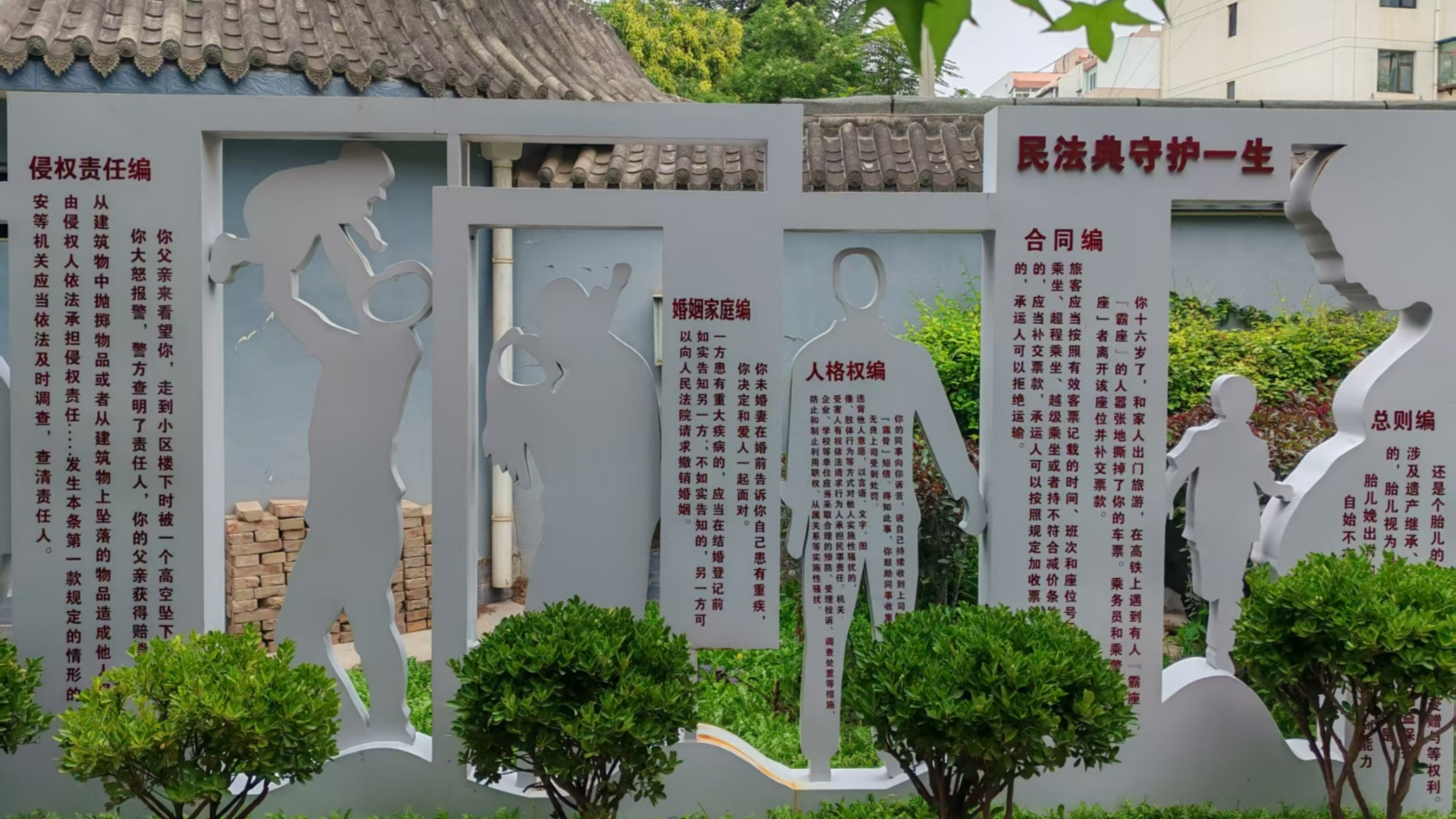 這座占地1900平方米的法治主題公園,將《中華人民共和國網(wǎng)絡(luò)安全法》《中華人民共和國數(shù)據(jù)安全法》融入游園場景:連接WiFi需答法治題,200余個垃圾桶印著“守法更有序”標語,藍色普法區(qū)掃碼可看法律發(fā)展歷程,“逛公園”與“學(xué)法律”自然融合。
