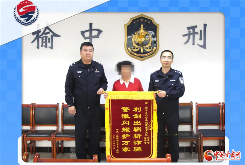 中國(guó)甘肅網(wǎng)11月3日訊(西北角·中國(guó)甘肅網(wǎng)記者 程?。┙?,蘭州市的張女士將一面印有“利劍出鞘斬詐騙 警徽閃耀護(hù)萬(wàn)家”的錦旗,送到了榆中縣公安局刑警大隊(duì)辦案民警手中。