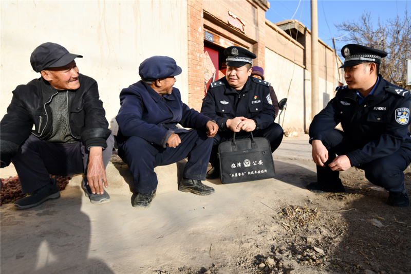 ▲臨澤縣公安局沙河派出所民輔警深入轄區(qū)村莊開展冬季用火、用電安全檢查,同時向群眾宣傳冬季生爐取暖的安全防范常識。(安學(xué)海 攝)
