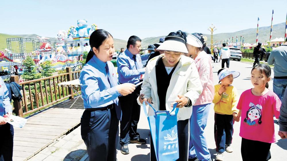 天??h檢察院檢察干警深入牧區(qū)宣傳“天祝白牦牛”品牌保護(hù)法律知識(shí)。