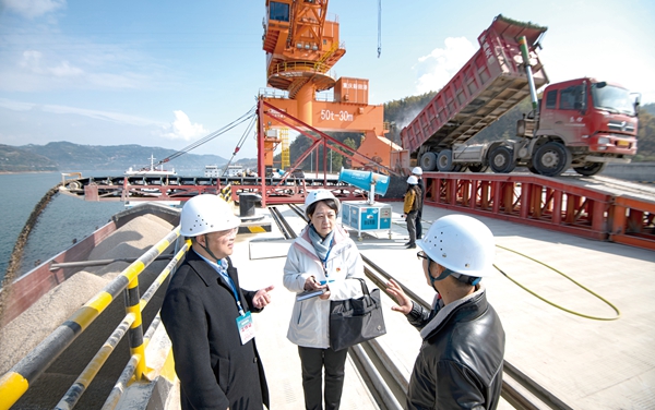 重慶市萬州區(qū)紀委監(jiān)委圍繞推動成渝地區(qū)雙城經(jīng)濟圈建設跟進監(jiān)督,保障重點工程順利推進、廉潔高效。圖為萬州區(qū)紀檢監(jiān)察干部深入重點水運項目新田港現(xiàn)場了解情況。 攝影/冉孟軍(萬州區(qū)紀委監(jiān)委干部)
