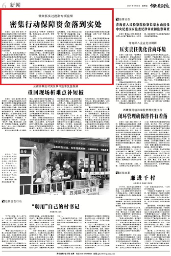 今年2月,抓住資金保障這個鞏固拓展和有效銜接的關(guān)鍵環(huán)節(jié),甘肅省紀委監(jiān)委派出調(diào)研組赴省財政廳、省扶貧辦、省農(nóng)業(yè)農(nóng)村廳等部門,就做好鞏固拓展和鄉(xiāng)村振興資金監(jiān)督開展調(diào)研,并深入天水市甘谷縣“解剖麻雀”。目前,正在研究制定相關(guān)監(jiān)督工作方案,從財政投入政策落實、資金全流程運行、各級責任落實3個方面梳理監(jiān)督任務(wù),加強對用于支持鞏固拓展和鄉(xiāng)村振興“7類資金”的監(jiān)督,重點防范和解決潛在的風險隱患,嚴肅查處向資金“伸黑手”的腐敗問題,確保資金投入有力有序,使用安全規(guī)范。