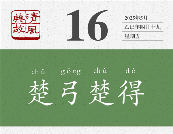 一般情況下,人們只拿楚恭王的話說事,并以“楚弓楚得”為典,比喻利益沒有外流,所以不必糾結(jié),類于俗話所說的“肉爛了都在鍋里”。凡事想開些,固然沒錯(cuò);但想得太開了,就有些“啥都無所謂了”的感覺。到了這個(gè)地步,也就值得警惕了。