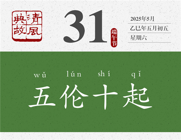 第五倫兄長的兒子經常生病,他晚上要起來十次去照料,這說明他有私心。但是,他寧肯自己晚上起來十次去照料,也從未利用自己的職位或影響力讓別人代勞,這說明他公私分明。后人遂以“五倫十起”為典,形容于私有情分,于公有原則。李瀚《蒙求》:“劉整交質,五倫十起。”劉整,南朝齊梁時人,任職中軍參軍,為人刻薄而貪婪。有一次,侄子在他家里住了十二天,他便親自上門去向寡嫂討米、索償飯費,寡嫂出門未歸,他竟然拿走了寡嫂家的車帷以作抵押。