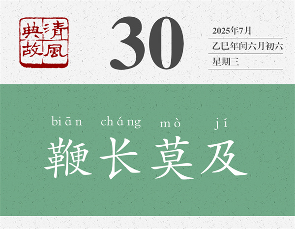 先古語,后民諺,伯宗的一番高能輸出,晉景公全無招架之功,只好打消了出兵救宋的念頭。“雖鞭之長,不及馬腹”的意思是,鞭子再長,也不能打在馬肚子上。不是因為鞭子觸及不到馬肚子,而是因為馬肚子不是鞭子該打的地方。后世則以“鞭長莫及”為典,說明鞭子雖然長,但還是打不到想打的地方,比喻因為距離太遠(yuǎn),而無能為力,或者因為實力不足,不能想得太遠(yuǎn)。