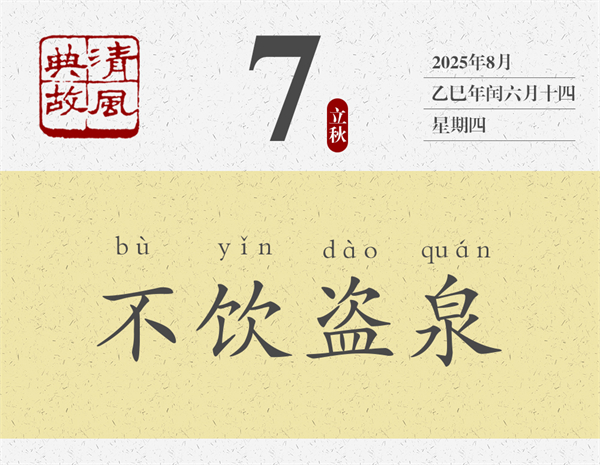 《尸子》卷下:“(孔子)過于盜泉,渴矣而不飲,惡其名也。” 孔子經(jīng)過盜泉的時候,雖然口渴了,但也不喝泉里的水,因為他厭惡“盜泉”這個名字。