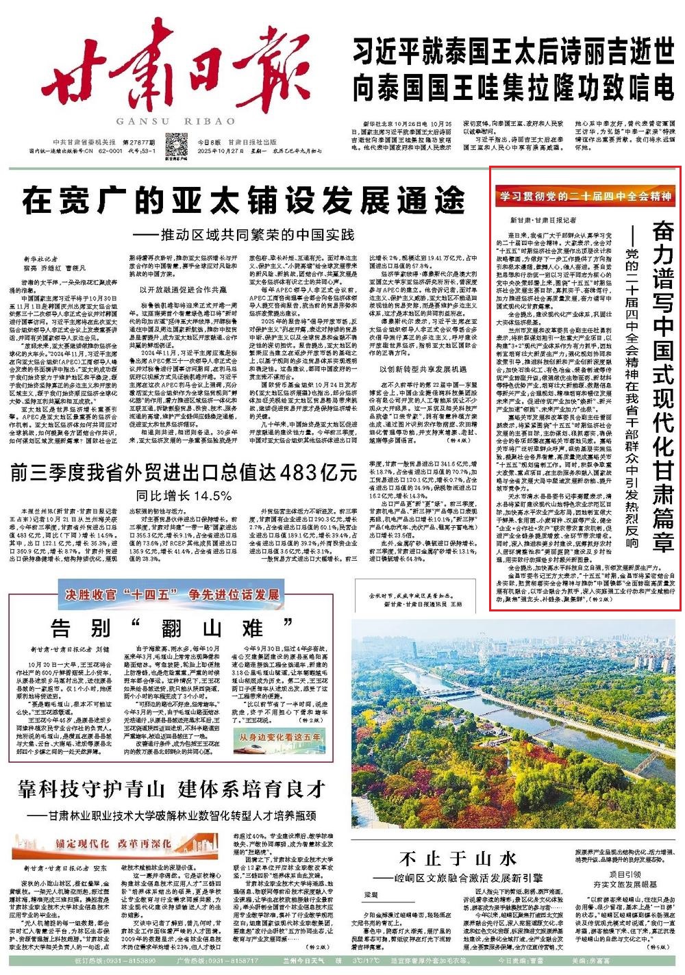 連日來,我省廣大干部群眾認(rèn)真學(xué)習(xí)黨的二十屆四中全會精神。大家表示,全會對“十五五”時期經(jīng)濟(jì)社會發(fā)展作出頂層設(shè)計和戰(zhàn)略擘畫,為做好下一步工作提供了方向指引和根本遵循,鼓舞人心,催人奮進(jìn)。要自覺把思想和行動統(tǒng)一到以習(xí)近平同志為核心的黨中央決策部署上來,圍繞“十五五”時期經(jīng)濟(jì)社會發(fā)展主要目標(biāo),真抓實干、奮楫篤行,加力推進(jìn)經(jīng)濟(jì)社會高質(zhì)量發(fā)展,奮力譜寫中國式現(xiàn)代化甘肅篇章。