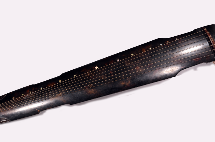 明代,通長124.5厘米,琴額寬17.3厘米,琴肩寬21厘米,琴尾寬13厘米,形制為仲尼式,琴面為梧桐木,通體呈深栗色。護(hù)軫為卷角飾,弦軫為紅木制成。琴腹龍池上方鐫刻篆書詩一首“空山無人,鳴泉幽咽,歸從舒音,淖猨司鈴”,共16字,落款為“鄭世子”。池下沼上鐫刻方形篆書印章一方,為“鄭學(xué)圖書”??谈箍?ldquo;大明萬歷十年歲次壬午二月吉旦,鄭世子載堉按太簇尺造”。朱載堉是明代杰出律學(xué)家、歷算家,首創(chuàng) “十二平均律”,在音樂、數(shù)學(xué)、天文等領(lǐng)域均有重大建樹。