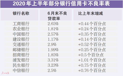 從信用卡資產(chǎn)質(zhì)量看,15家披露了可比數(shù)據(jù)的上市銀行中,截至6月末,2家銀行信用卡不良貸款率較年初降低,對外開放有力促進了資本市場運行質(zhì)量的提升。其中,中信銀行稱,受疫情影響,信用卡持卡人收入下降、還款能力降低、還款意愿減弱,信用風(fēng)險有所承壓。從行業(yè)上看,信用卡不良貸款和問題貸款相對高發(fā)的持卡人所在行業(yè)主要是商業(yè)貿(mào)易和制造業(yè)。