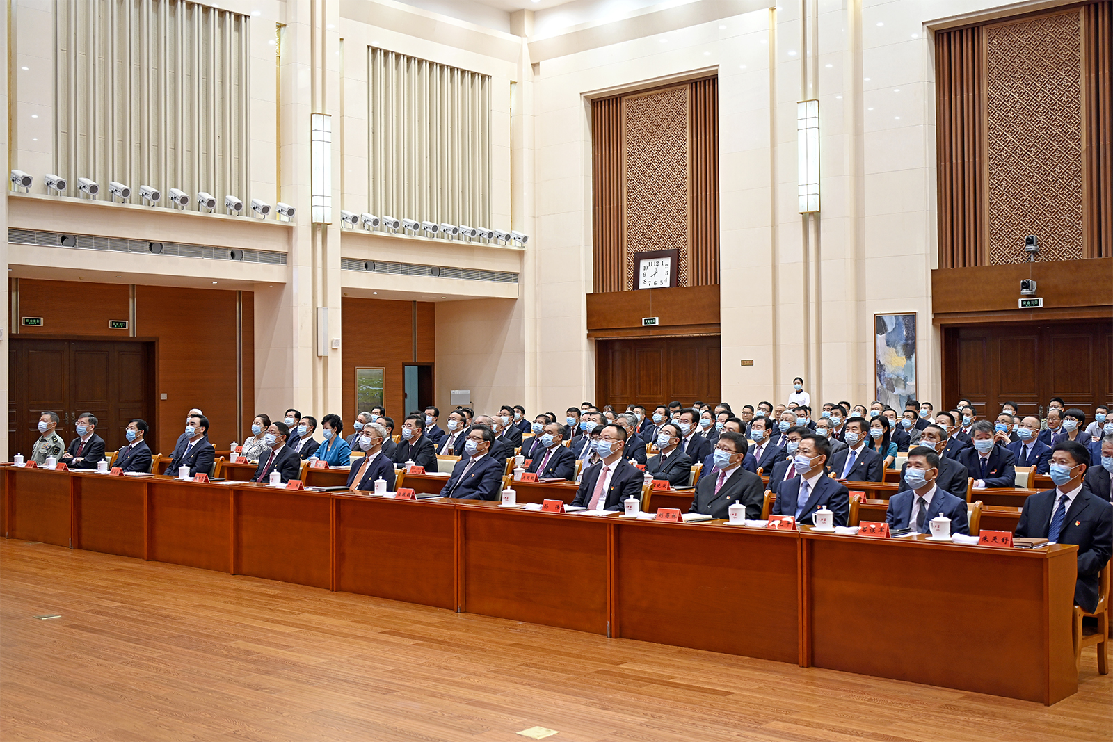 7時(shí)53分許,在歡快的樂(lè)曲聲中,習(xí)近平等黨和國(guó)家領(lǐng)導(dǎo)人來(lái)到天安門城樓主席臺(tái),會(huì)場(chǎng)爆發(fā)出熱烈的掌聲。8時(shí)整,慶祝大會(huì)開(kāi)始,中國(guó)人民解放軍聯(lián)合軍樂(lè)團(tuán)奏響雄壯的《義勇軍進(jìn)行曲》,尹弘、任振鶴等全體起立,隨北京現(xiàn)場(chǎng)一起高唱中華人民共和國(guó)國(guó)歌,目視大屏幕里鮮艷奪目的五星紅旗冉冉升起,在天安門廣場(chǎng)上空迎風(fēng)飄揚(yáng)。在熱烈的掌聲中,習(xí)近平總書(shū)記發(fā)表重要講話,大家認(rèn)真聆聽(tīng)、專心筆記,第一時(shí)間深刻學(xué)習(xí)領(lǐng)會(huì),不時(shí)報(bào)以熱烈的掌聲。