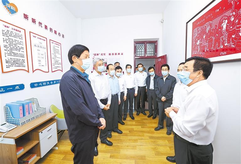 8月26日至28日,中共中央政治局常委、全國人大常委會委員長栗戰(zhàn)書在甘肅就黃河保護法立法進行調研。這是8月26日,栗戰(zhàn)書在慶陽市西峰區(qū)后官寨鎮(zhèn)人大代表之家調研。新華社記者 龐興雷