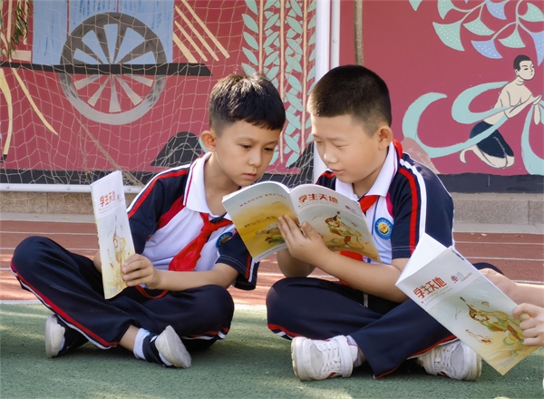 敦煌市南街小學(xué)學(xué)生在閱讀學(xué)生天地之《敦煌文化進校園》特刊 。敦煌市委宣傳部供圖