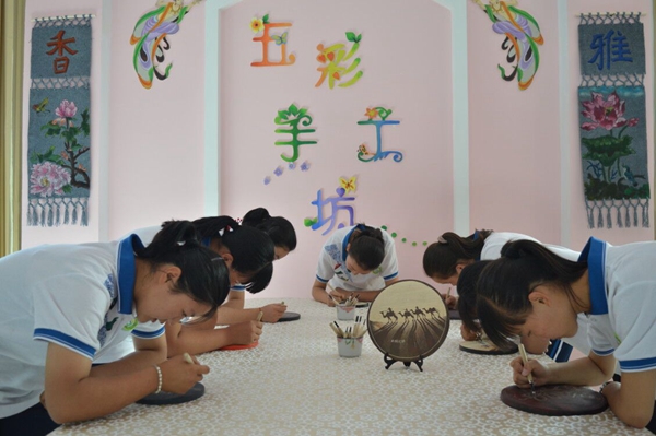 敦煌市黃渠中學(xué)學(xué)生學(xué)習木板雕刻畫。敦煌市委宣傳部供圖