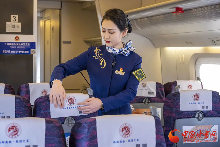 中國甘肅網12月27日訊 隨著聯(lián)調聯(lián)試、運行試驗等各個關鍵節(jié)點順利完成,銀蘭高鐵中蘭段已進入開通倒計時,銀蘭高鐵乘務團隊也驚艷亮相。