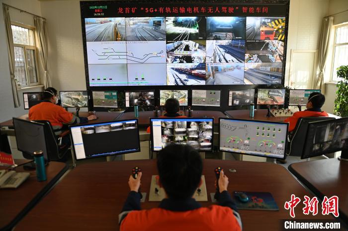 圖為金川集團(tuán)龍首礦“5G+有軌運輸電機(jī)車無人駕駛”智能車間內(nèi),操作員正在進(jìn)行遠(yuǎn)程控制。