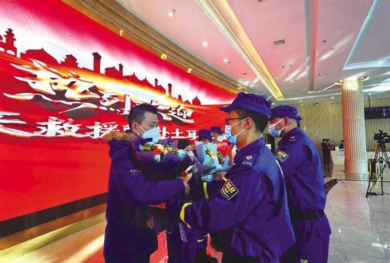 原標(biāo)題:9名馳援土耳其的甘肅藍(lán)天救援隊(duì)隊(duì)員平安歸來