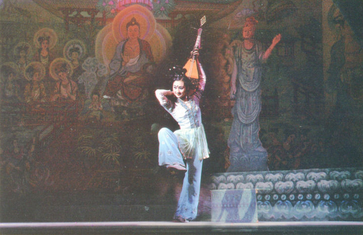 1980年,高金榮編纂了《敦煌舞教學(xué)大綱》,并于當(dāng)年招收了第一屆敦煌舞班學(xué)生。教學(xué)實(shí)踐中,她開創(chuàng)了包括呼吸、手姿、手臂、單腳形態(tài)和琵琶道具組合在內(nèi)的舞姿訓(xùn)練課,編導(dǎo)了《敦煌夢幻》《極樂敦煌》等組舞以及教學(xué)劇目《千手觀音》《妙音反彈》《大飛天》《歡騰伎樂》《莫高女神》等,再一次“活化”了敦煌壁畫,形成了完備的敦煌舞教學(xué)體系。