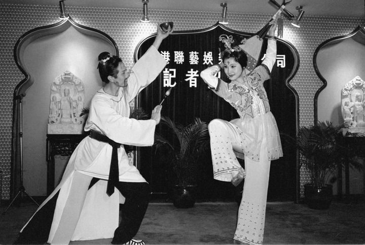 1980年1月16日,甘肅省歌舞團(tuán)在香港演出。演員在記者招待會(huì)上表演。新華社發(fā)(周桂蓮攝)