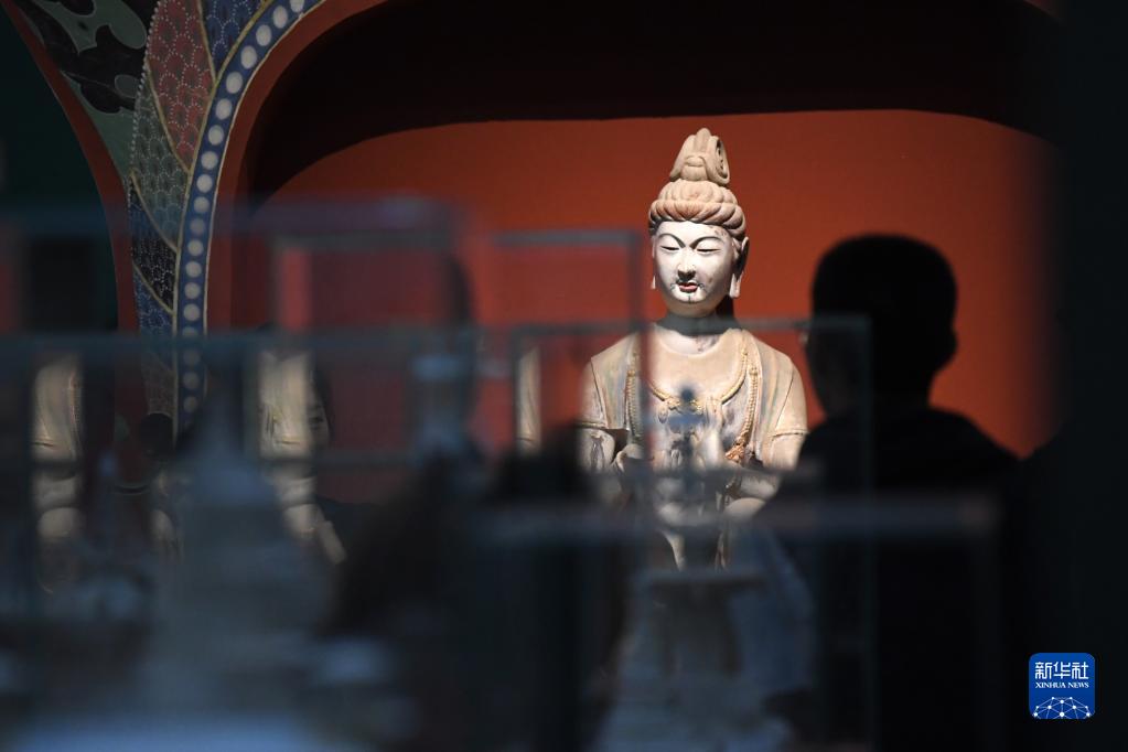 4月5日,觀眾在敦煌研究院蘭州分院敦煌藝術(shù)館參觀。新華社記者 陳斌 攝