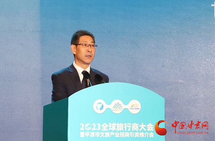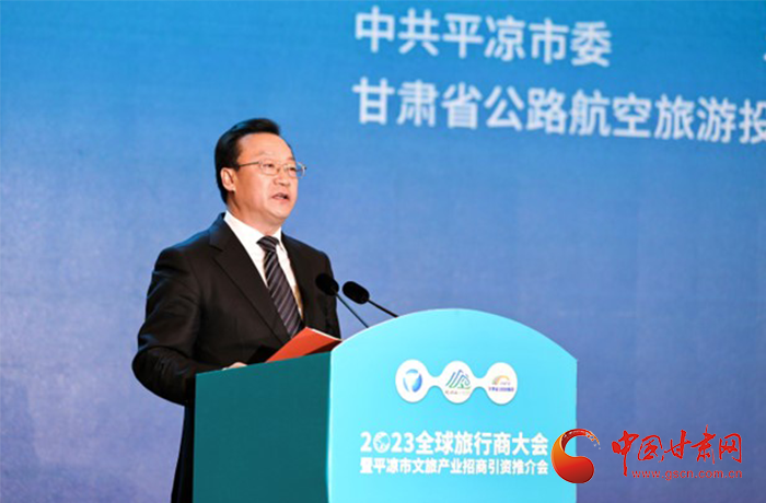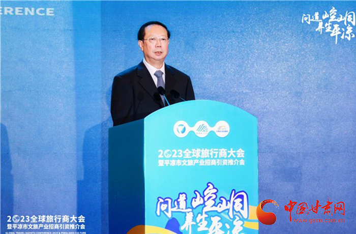何效祖在致辭中說,平?jīng)鍪歉拭C向東開放的“門戶”城市,是風(fēng)景宜人的旅游城市,是甘肅布局的文旅康養(yǎng)基地和支撐“一核三帶”區(qū)域發(fā)展格局中的重要支點,擁有崆峒山、大云寺·王母宮、瑤池溫泉等眾多聞名遐邇的人文和自然景觀。今天,我們與平?jīng)鍪形姓?、中國旅行社協(xié)會、甘肅公航旅集團(tuán)一道搭建平臺,誠邀各位嘉賓走進(jìn)甘肅、深入平?jīng)觯M織開展宣傳推介、洽談合作、展示展銷、考察踩線等系列活動,就是要引導(dǎo)大家深度感知甘肅高質(zhì)量發(fā)展的強烈愿望,實地觸摸甘肅文旅如火如荼的生動實踐,誠懇表達(dá)隴原兒女“視企業(yè)家為最寶貴財富”的真誠合作和赤誠服務(wù)之心。我們衷心希望,廣大中外旅行商和文旅專家、文旅企業(yè)家以本次大會為契機,加強交流互鑒,深化務(wù)實合作,加大在甘投資力度,組織更多游客到甘肅觀光旅游,帶動更多優(yōu)質(zhì)文旅企業(yè)和項目落戶甘肅,合力譜寫甘肅文旅高質(zhì)量發(fā)展的嶄新篇章!