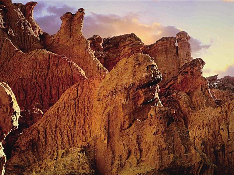 張掖土林地貌主要集中在該市肅南縣境內,平均海拔高度1700米左右,面積約20平方公里。土林發(fā)育齊全、類型多樣,從幼年時期的細溝土牙,到中青年期的圓盆土柱,直至成熟期的坡地殘柱,均有呈現,完整地展示了土林地貌的形成與演化過程。
