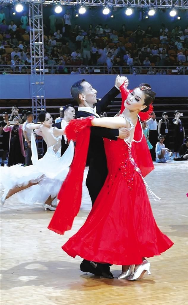 當(dāng)天的蘭州奧體中心綜合館內(nèi)燈光璀璨、激情四射。伴著或動(dòng)感或舒緩的音樂,優(yōu)雅浪漫的華爾茲、熱情奔放的探戈、性感狂野的倫巴……舞者們依次上場(chǎng),將最優(yōu)美、最富激情、充滿藝術(shù)活力與創(chuàng)造力的高水平體育舞蹈展現(xiàn)在觀眾和裁判面前。
