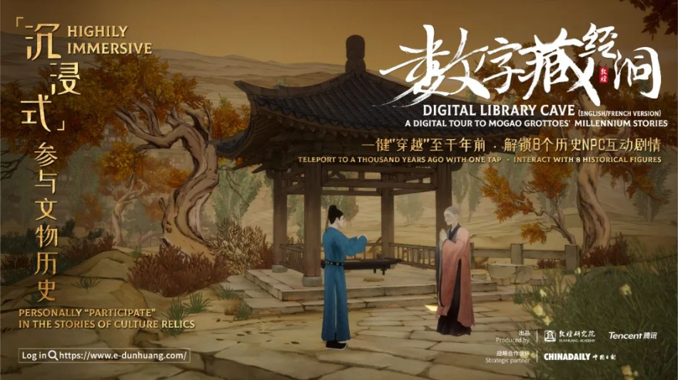 敦煌藏經(jīng)洞是20世紀(jì)最重要的考古大發(fā)現(xiàn)之一,曾出土6萬余件古代文獻(xiàn)和藝術(shù)品,被譽(yù)為“打開世界中世紀(jì)歷史的鑰匙”。基于藏經(jīng)洞出土文物和敦煌石窟等相關(guān)研究,敦煌學(xué)逐漸成為一門“國際顯學(xué)”。一直以來,敦煌研究院致力于聯(lián)動社會力量,利用現(xiàn)代數(shù)字技術(shù)推動文化遺產(chǎn)數(shù)字化和弘揚優(yōu)秀傳統(tǒng)文化。“數(shù)字藏經(jīng)洞(國際版)”在共建“一帶一路”倡議提出十周年之際率先推出,以“超時空參與式博物館”這一創(chuàng)新形態(tài),豐富了以往以文化展覽、學(xué)術(shù)論壇等為主的交流體驗?zāi)J?,綜合運用游戲科技,為海外用戶帶來全新的文化體驗。